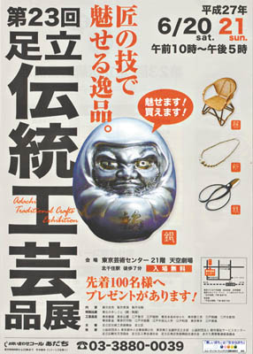 6月20日(土)、21日(日)の2日間、東京芸術センター21階の天空劇場で「第23回足立伝統工芸品展」が開催される。