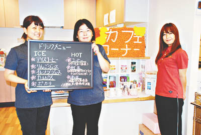 特別養護老人ホーム内にも人気の小さなカフェコーナーがあり、入居者やその家族は1階のカフェと行ったり来たりして楽しんでいる。HP★「足立朝日」を見たで、7月末までプチデザートサービス