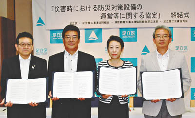 協定を結んだのは足立管工事業協同組合(54社)、東京都管工事工業協同組合足立支部(75社)、足立管工設備協力会(29社)。