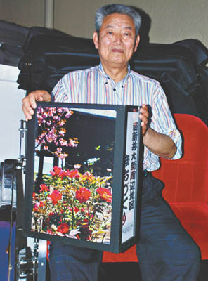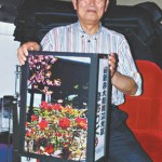 写真/製作された行燈を手に田口会長=行燈まつりで