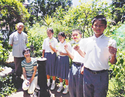 14日。最初は庭がハーブ園になっている江北5丁目の中澤邸で取材。中澤さん夫妻から何種類ものハーブの説明を受け、庭を回って葉の匂いを嗅いだりした。「たくさんのハーブについて知ることが出来て良かった」と岡田さん。