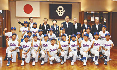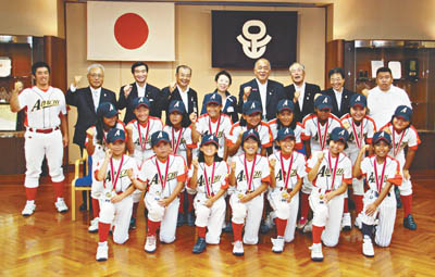 両チームは7月28日(火)、区役所で行われた激励会に出席し、近藤やよい区長、高島直樹・足立区軟式野球連盟会長から激励を受けた。