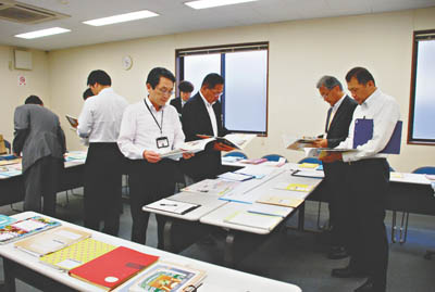 写真上/熱心に審査をする各審査委員ら=あさひホールで