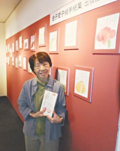 写真上/「今はもう絵手紙に夢中」と語る金子さん=大崎ウェストギャラリーで