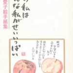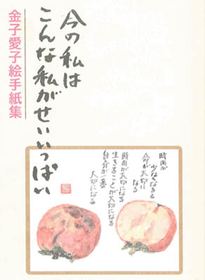 この絵手紙のことが、絵手紙協会に伝わり、月刊「絵手紙」の取材を受け、一昨年の4月号に載った。そして「本にしよう」ととんとん拍子に話がまとまり、昨年10月「今の私は こんな私がせいいっぱい」と題した「金子愛子絵手紙集」(B5判、95頁、700円、大崎ウェストギャラリー発行)が出版された。そして、それを記念して昨年12月3日(木)~8日(火)、同ギャラリーで個展が開かれた。訪れた女性2人組みは「色使いがすごい。絵手紙を自分のものにしている!」と感嘆の言葉を吐いた。