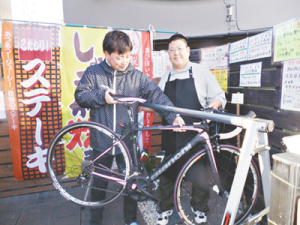 江北1丁目在住の会社員でサイクルグループに入っている常連客の一人菅原さん(38)が、「荒川河川敷を走る自転車グループが、安心して自転車を置ける休憩場所が少ないので困っている」と同店の彦坂光昭店主(52)に話し、世話好きの店主が「それではうちに」と実現したもの。