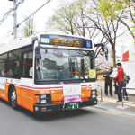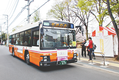 写真上/花めぐりバス=昨年・元渕江公園停留所で