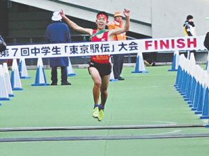 一方男子は、2区で先頭に立つと、いくつかの区間で2位になることもあったが、13区から17区まではトップで走りぬいた。最終17区では、追いすがる町田を振り切り、最終ランナーのキャプテン・飯川慧くん(第十一中、陸上競技部)が2時間20分39秒でゴールのテープを切って、こちらも初優勝。この時点で「総合優勝」が決まり、スタンドも含め大興奮。