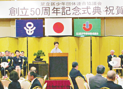 足立区少年団体連合協議会「創立50周年記念式典・祝賀会」が2月13日(土)、日暮里のホテルラングウッドで開かれた。