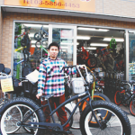 六町公園の裏にある「自転車屋パーシモン」(六町3-5-25SKビル101号室、TEL5856・4453)。バランス感覚を向上させるペダルもブレーキもないアメリカ生まれの子ども向け(2歳~5歳)自転車「ストライダー」や大きいタイヤの自転車「ファットバイク」など珍しい自転車なども販売しているお店として区外からも注目されている。代表の菅谷泰史さん(32)は、お父さんが競輪選手で幼い頃から自転車を身近に感じて過ごしてきた。本人も最初は競輪選手を目指していたが断念。これまでの経験を生かして昨年2月に自転車屋をオープンさせた。