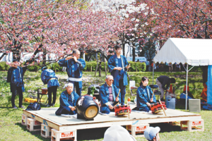 写真/桜の下の和太鼓演奏=昨年の「五色桜まつり」で