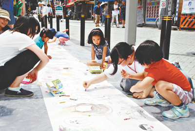 記念すべき500万人目のお客さんは、この日初めてギャラクシティを訪れたという横浜市在住の田中潤さん(45)、黎くん(8)、慧くん(5)親子。田中さんは「雑誌のランキングで1位だったので初めて来ました。そうしたら500万人ということで大変ビックリしましたが、記念品ももらえてすごくうれしいです」と喜んだ。田中さん親子には、西新井7丁目にある土屋鞄製作所のパスケース、ペンケース、ブックカバーが贈られた。