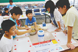 子どもたちに健康的な生活習慣を啓発するための、産官民連携のプロジェクト「朝ハロしよ!」が、7月14日(木)・15日(金)、平野小学校(平野3-6-3、葛谷裕治校長)で行われた。