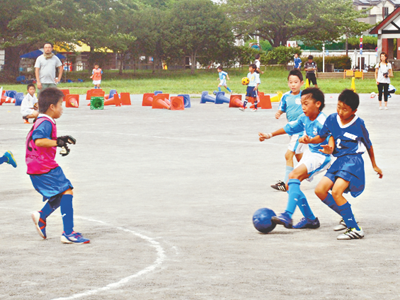 この大会は、子どもたちに夏休みの思い出づくりをしてもらおうと毎年開催されていて、ミニゲームとサッカーサスケが行われた。少年の部では男の子の中に女の子が入って頑張っているチームもあり、汗をかきながら懸命にボールを追う姿が印象的だった。また、サッカーサスケではリフティングをしたり、障害物をドリブルで駆け抜けるタイムアタックで、相手よりも1秒でも早くゴールしようと自分の力を精一杯出して挑んだ。