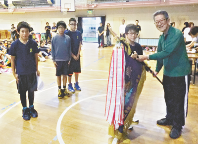 参加賞を渡す東京足立ライオンズクラブの武居前会長