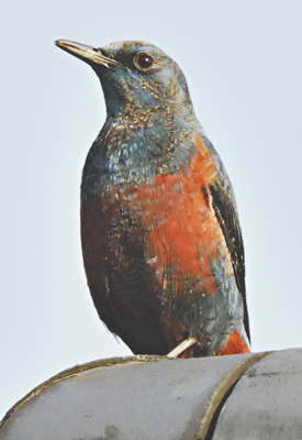 この宵っ張りの鳥の正体はイソヒヨドリ。海岸近くに棲む鳥だが、近年は八王子で繁殖が確認されるなど内陸部に生息地を広げている。都市農業公園でも目撃されている。