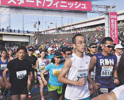 日本陸連の公認大会とあって、北海道から沖縄まで39都道府県、小学生から80歳代まで7900人が出場。今回も、東日本大震災復興支援金として、大人の参加費に100円をプラス。昨年は、83万円余が福島県に贈られたが、今年は宮城県に贈られる予定。