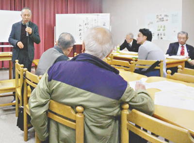 第4回「芭蕉翁顕彰の集い」が12月2日(土)、千寿本町小学校で開かれ、小山正見日本学校俳句研究会代表(70)が講演、土田翔之中川北小学校教諭(33)が実践報告を行った。昨年5月に発足した「芭蕉翁顕彰会」(実行委員長・飯島弘千住鷗外碑保存会会長)と郷土博物館、足立史談会(堀川和夫会長)の共催。学びピアにひっそりと置かれている松尾芭蕉陶像を「芭蕉旅立ちの地・千住」の象徴として旧街道沿いに設置しようという活動の一環。講演会には、区民約40人が参加した。