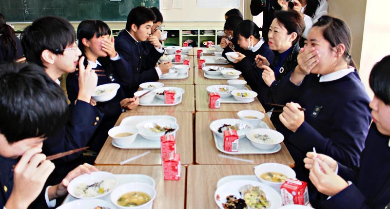 区長は「近藤さん」と屈託なく話しかけてくる生徒たちと雑談を楽しみながら食べ終わると、「中学の給食は量が多いと聞いていたので心配だったが、バラエティに富んだ味で、気が付いたら完食していた」と絶賛。倉沢さんは「貴重な経験になった」と笑顔で話した。