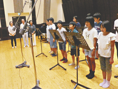 写真上/レコーディングする児童たち=東京芸大で
