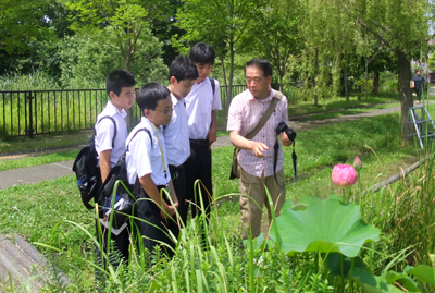 4人が取材したのは、西新井大師で行われていた「風鈴祭り」、ホタルの観察会が続いていた保木間2丁目にある生物園、1 400年前の種子から発芽した古代ハスが咲く花畑8丁目の桑袋ビオトープ公園の3カ所。