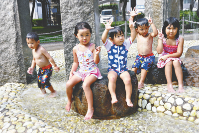 区内約20カ所の公園にある「じゃぶじゃぶ池」が人気だ。オムツの取れた就学前の子どもが対象の区営のプールで、西新井地域には「諏訪木西公園」「新西新井公園」「中郷公園」の3カ所にある。