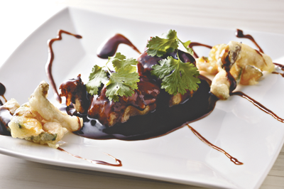 オススメは「黒酢酢豚の旬野菜天ぷら添え」(1200円)、「四川担々麺」(850円)、「黒チャーハン」(750円)など。※表示価格は税込み。