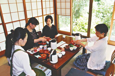 穏やかな時間の流れる和室の中、参加者たちは自分で煎れたお茶の普段との味の違いに、「おいしい」と満足そう。