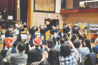 昨年12月23日(土・祝)、高野小学校体育館で江北地域にある江北桜中学校、扇小学校、江北小学校、高野小学校の各校PTAが中心となり、初めて「ふれあいクリスマスコンサート」を行った。各校の吹奏楽部やブラスバンドの演奏を聴きに地域住民ら100人以上が訪れた。