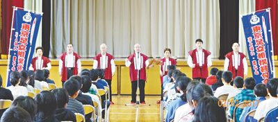 興本扇学園(西村豊校長)で2月2日(木)、5、6年生131人を対象に、相撲甚句の出前授業が行われた。