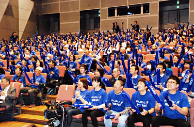 2月19日(月)、鹿浜にある一般財団法人博慈会(三瓶広幸理事長)所属の加藤条治選手が、平昌オリンピックの男子500mスピードスケートに出場するということで、区と博慈会が共催して区役所庁舎ホールで「パブリックビューイング」を開催。足立区から平昌まで熱いエールを送ろうと332人が集まった。