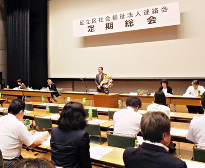 「お互いに連携して地域になくてはならない社会福祉法人を目指そう!」との趣旨で昨年8月に発足した「足立区社会福祉法人連絡会」(近藤常博会長=聖風会理事長、115会員)が、7月18日(水)区役所ホールで第1回総会を開いた。