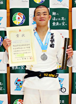 8月8日(水)~10日(金)、三重県津市サオリーナで開かれた第67回全国高等学校柔道大会(インターハイ)に団体と個人3階級(60㎏級、66㎏級、81㎏級)で出場。8月10日(金)の個人戦81㎏級で、押領司龍星くん(高3)が準優勝の成績を収めた。押領司くんは、1回戦は徳島県代表(鳴門渦潮高等学校)に反則勝、2回戦・石川県代表(鶴来高等学校)、3回戦・長崎県代表(五島高等学校)、4回戦・福岡県代表(大牟田高等学校)を相手にそれぞれ優勢勝。準決勝で兵庫県代表(育英高等学校)に背負投1本勝を収め、決勝戦では千葉県代表(木更津総合高等学校)に惜しくも抱分1本負となった。