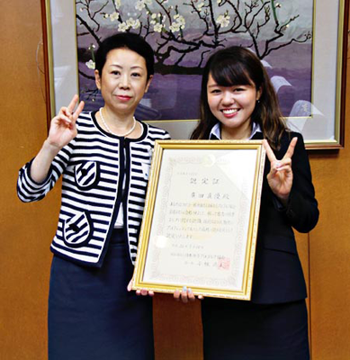 写真/合格認定書を手に区長を訪問した廣田さん=区役所で