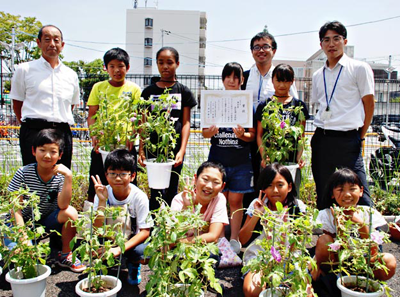 今年は連日の猛暑が続き、ほとんどの子がうまく花を咲かせることが出来ず、葉っぱのみの状態のものも多く見られた。それでも、茎の育ちや葉の色などからどれも一生懸命育てたことが分かり、審査員たちは「甲乙つけがたい」と頭を悩ませた。個人の部で優秀賞を受賞した伊東さんのアサガオは、葉の色も良く、咲いた1輪の花が天に向かい元気に育っている点などが評価された。