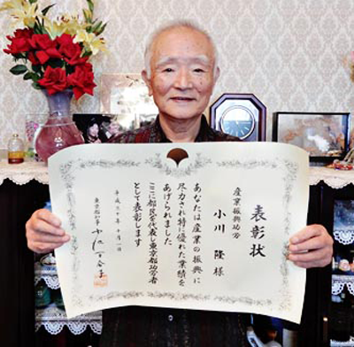 この間、同組合の副理事長を約20年勤め、3年前に理事長に就任した。「まだまだ現役で頑張る」という小川さんは「大切なのは飽きずに商売をやること。続けていれば必ずいいことがある」と受賞の喜びを語った。