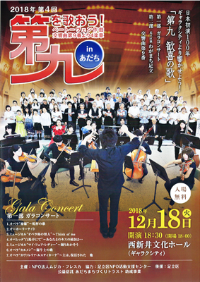 足立区でも「第九を歌おう!inあだち」が、12月18日(火)、西新井文化ホールで開催される。