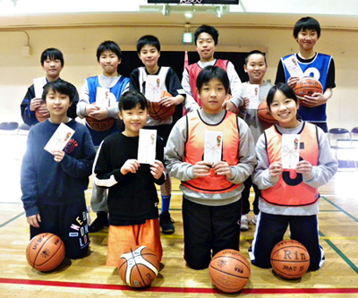 試合以外にも全員参加のフリースロー大会が行われ、1回外したら終わりの形式で最後までシュートを外さなかった男子6人女子4人に図書券が手渡された。閉会式の最後には、監督やコーチ、両親にこれまでの感謝を込めて「ありがとうございました」と選手全員で伝えた。