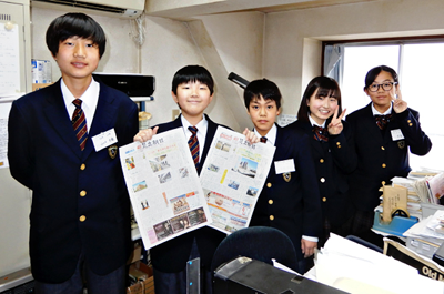 2月8日(金)、第十中学校(梅島3丁目、早乙女雄一郎校長)の1年生5人が、千住旭町にある足立朝日編集室を訪問、新聞づくりの基本を学んだ。