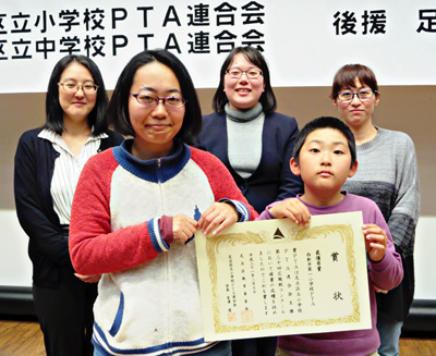 「『安全』をテーマに、親子で楽しめる広報紙を目指しました。クイズやキャラクターを駆使して、地域とPTAが一緒になって子どもたちのために活動している様子を盛り込みました。研修会で学んだ通り、一つひとつ自分たちの足・耳・目を使って、保護者が知りたい生きた情報を集めてまとめたこの広報紙が最優秀賞を頂き、心からうれしく思っています」