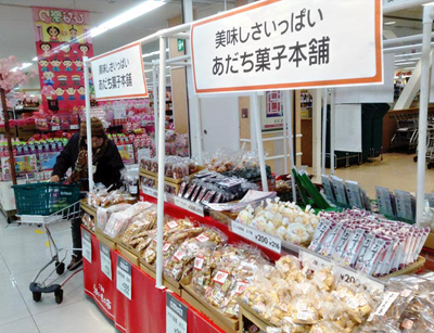イトーヨーカドー竹の塚店は、「あだち菓子本舗」のお菓子を昨年の設立時から常設展示販売するなど、「地元を大切にする」意識が高い。その先頭に立つ片山修次販売促進部長は「こうしたイベントを年に1回はやりたい」と張り切っている。