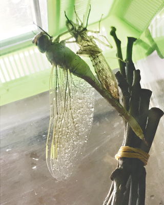 写真/西村さんが捉えたギンヤンマが羽化する瞬間=梅島の家で