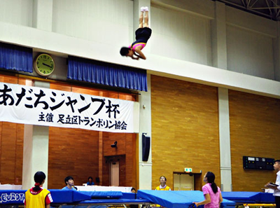 足立区トランポリン協会主催「第37回あだちジャンプ杯」が7月7日(日)、165人が参加して総合スポーツセンターで開催された。クラス別結果は次の通り(敬称略)。