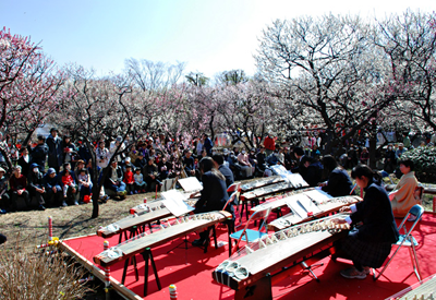 中/梅園で演奏される足立東高校の箏曲=同