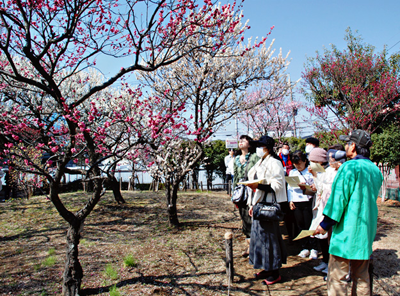 写真上/人気の梅のガイドツアー=一昨年の梅まつりで