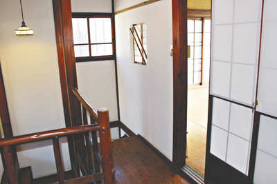 2/木の手すりが心地いい2階階段付近。右は空き室の和室