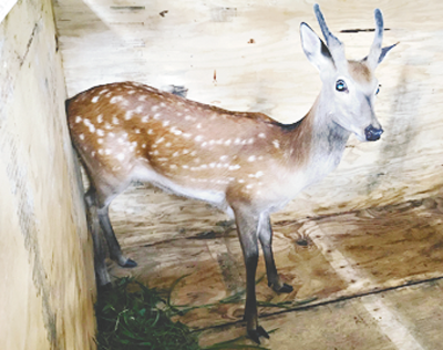 引き取り手が見つからない場合、最悪殺処分もあり得ただけに「シカの命を守るために引き受けました」と市原ぞうの国の担当者。名前はエスケープ(逃げる)から「ケープ」と名付けられた。