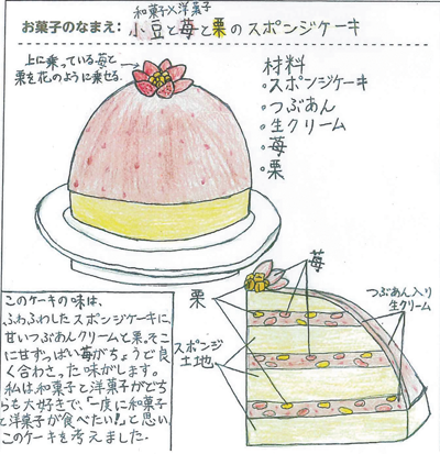 写真上から①/グランプリに輝いた「小豆と苺と栗のスポンジケーキ」