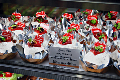 「パティスリー ラヴィアンレーヴ」(梅島3-6-16)が商品化したグランプリ作品「和菓子×洋菓子 小豆と苺と栗のスポンジケーキ」(税込600円)を購入した女性は「思わず写真に撮りたくなるような可愛いケーキで、和菓子と洋菓子を一緒に楽しめるなんて凄い発想ですね」と子どもらしい贅沢な考えに驚いていた。