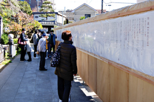 11月23日(月・祝)、小林一茶ゆかりの炎天寺(吉野秀彦住職、六月3-13-20)で「第59回一茶まつり」が開催された。今年は新型コロナウイルス感染拡大防止のため、一茶忌法要と全国小中学生俳句大会の特選・秀逸句の掲示のみ行われた。